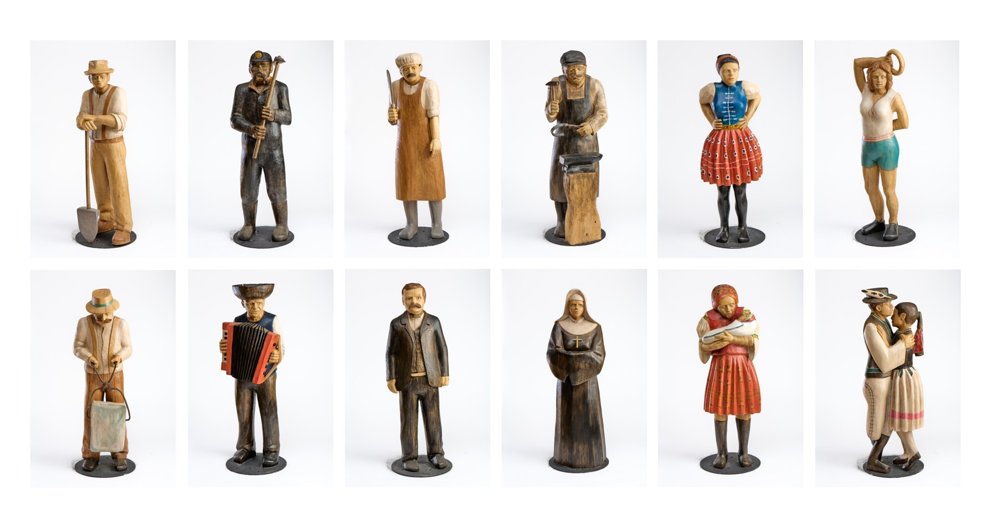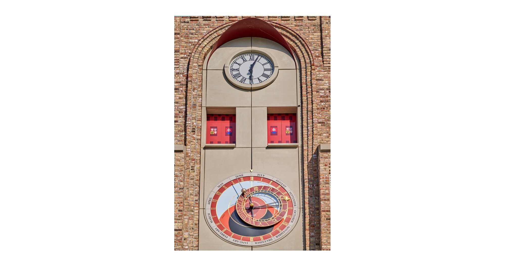 At the top of each hour, red doors above the astronomical clock open to reveal twelve hand-carved figures representing the working lives of Czech and Slovak immigrants. Each four-foot figure, carved from Slovak white oak, rotates on a carousel set to music by Czech composers.